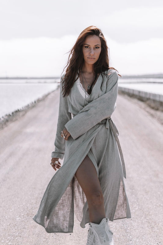 AanbiedingHelena Linen Wrap Dress Light Grey