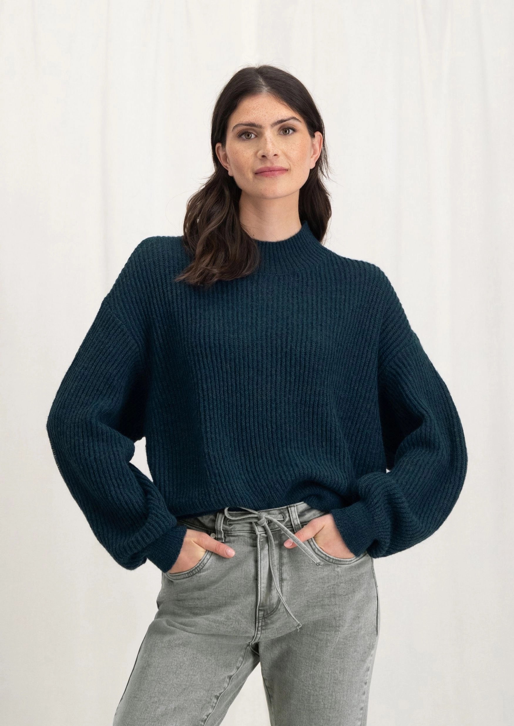 De Cece Knit is een elegante gebreide damestrui in een diepe blauwgroene tint, Atlantic Deep. Deze trui heeft een subtiele kleine col en een oversized fit, wat zorgt voor comfort en een trendy uitstraling. Het hoogwaardige breisel biedt warmte en zachtheid, ideaal voor koelere dagen. Draag de Cece knit op een strakke jeans voor een casual look of voor een boho touch met lange Paisley printed rok en boots.