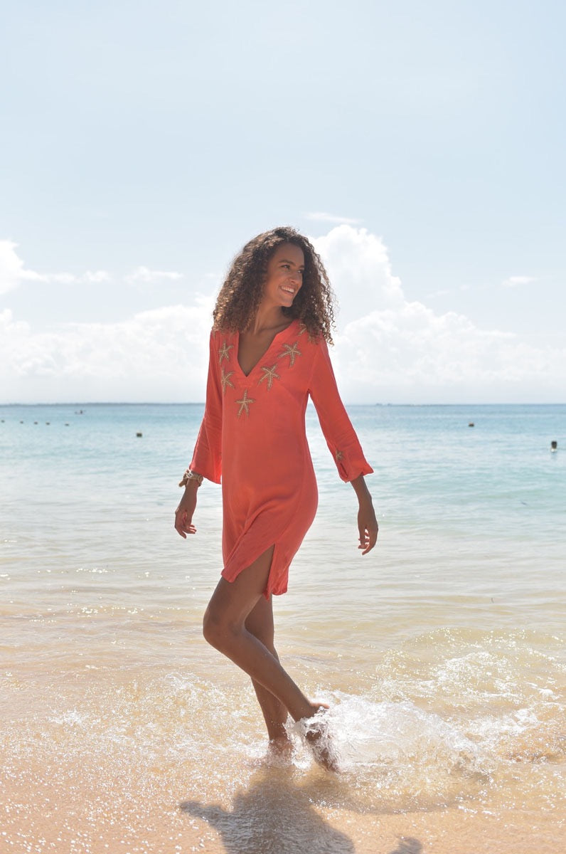 Take me to the beach! The Starfish from Hot Lava is a winner in the range every year. Wear the tunic as a short dress or dress over your bikini, but also as a blouse on your shorts or jeans, finishing the look with the Starfish slippers.