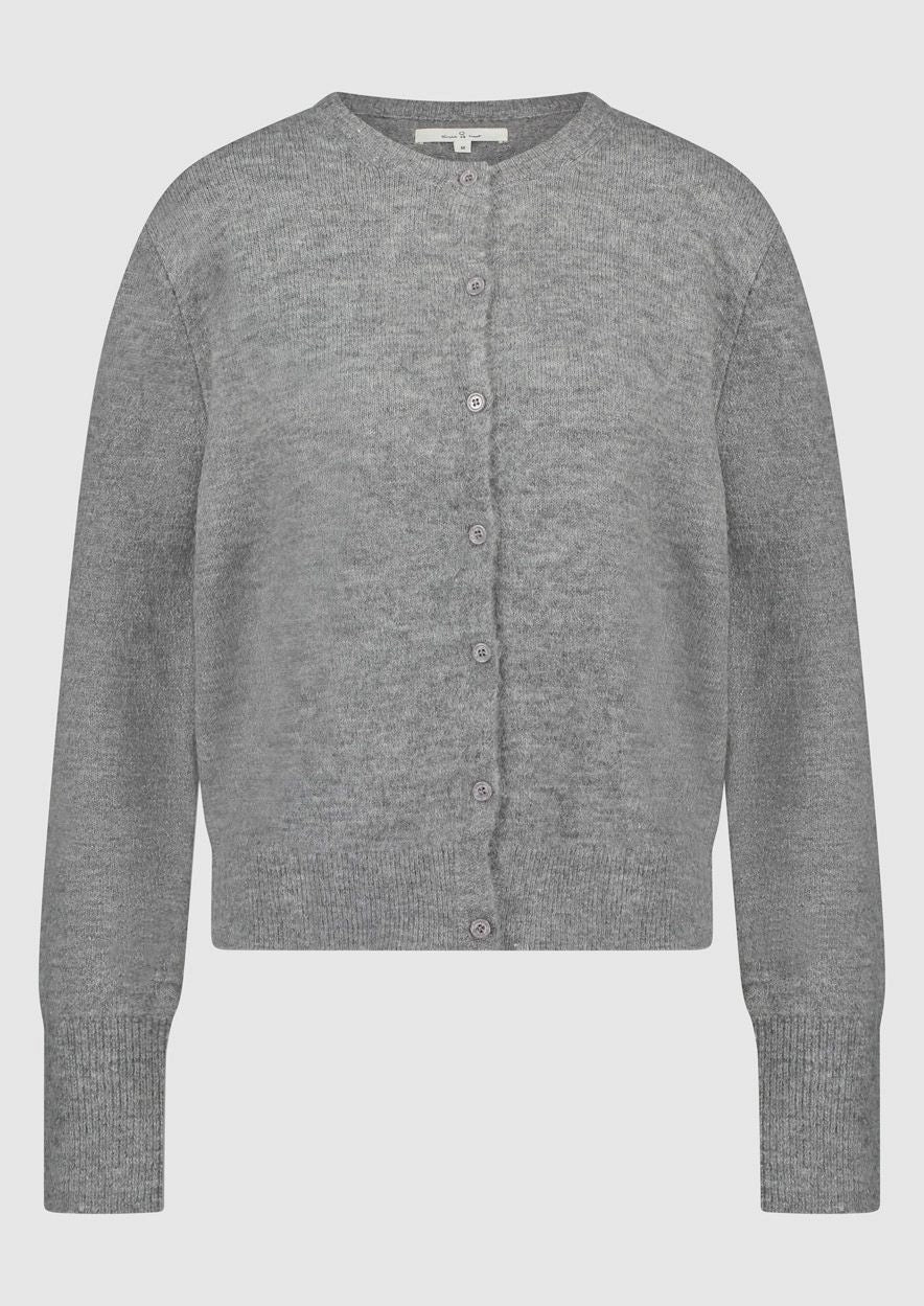 De Andy Cardigan is een dames trui die moeiteloos combineert. Dit gilet heeft een regular fit die zorgt voor een relaxte, maar toch flatterende pasvorm. Met knoopjes vooraan kun je deze cardigan zowel open als gesloten dragen. De ronde hals voegt een klassieke touch toe, terwijl de geribbelde boord onderaan en aan de mouw uiteinden een subtiel detail bieden. Uitgevoerd in een grijze melange tint, is deze cardigan een tijdloze toevoeging in elke stijl.