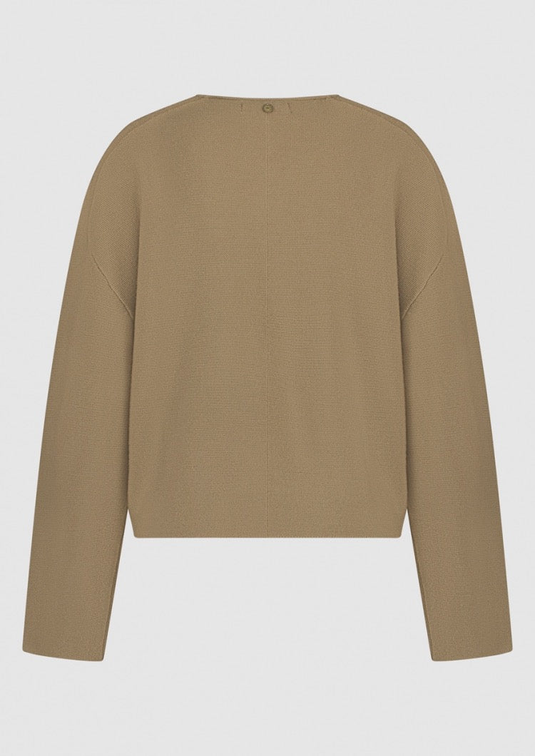De Ayden Knit is een zachte, luxe dames trui van 100% wol in een warme cognac kleur. De loose fit trui heeft een ronde hals en drop schouders, wat zorgt voor een relaxte en stijlvolle look.