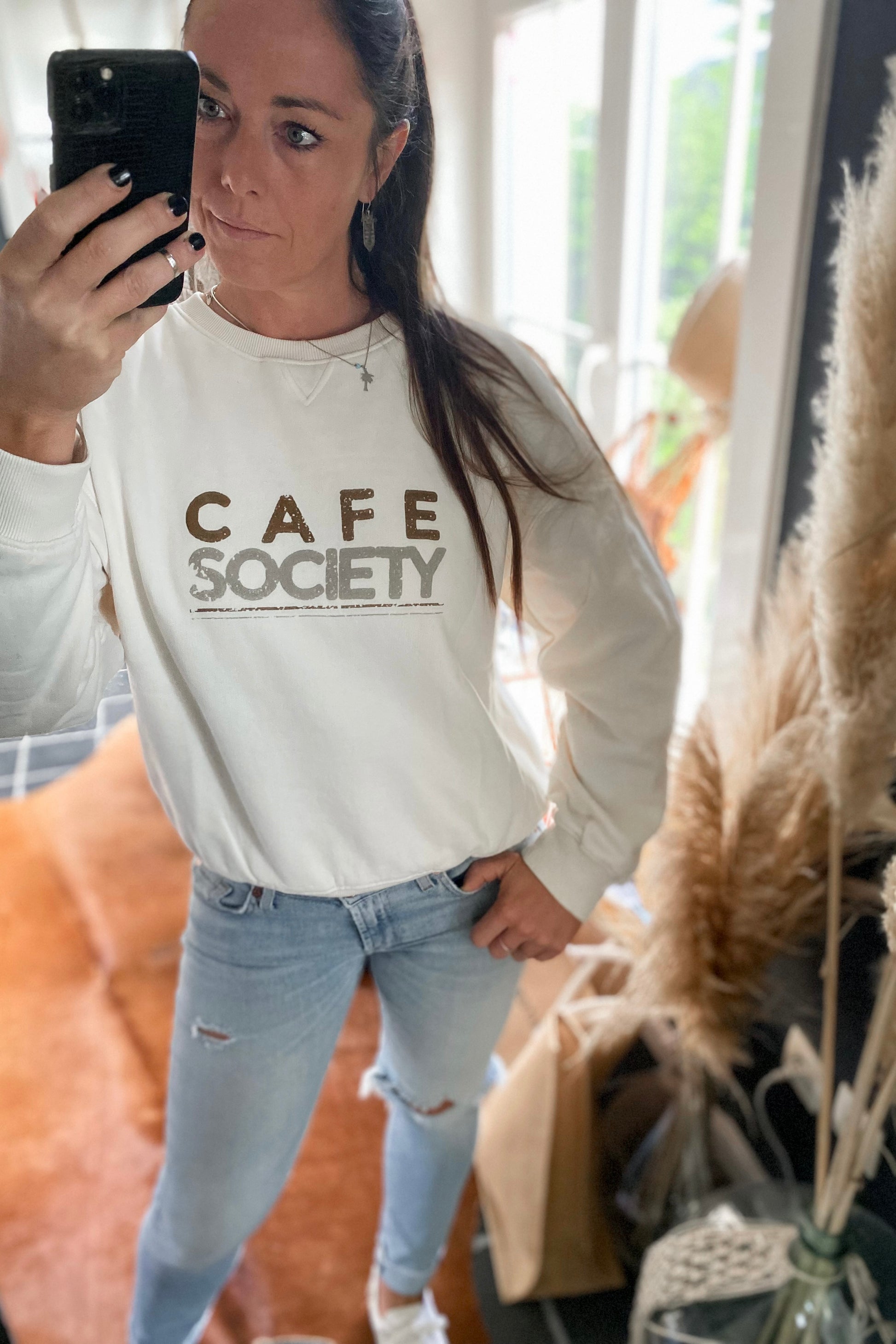 De Cafe Society Sweater van Circle Of Trust is een comfortabele keuze voor liefhebbers van casual mode. Deze prachtige witte trui wordt geaccentueerd door de opvallende bruine en grijze opdruk " Cafe Society". De trui heeft een ronde hals afgewerkt in geribbelde boord.