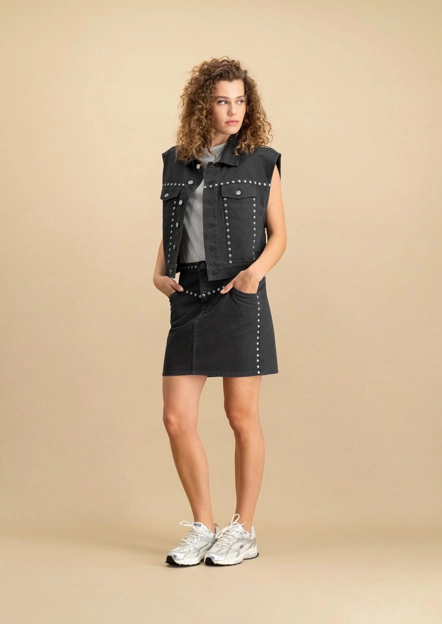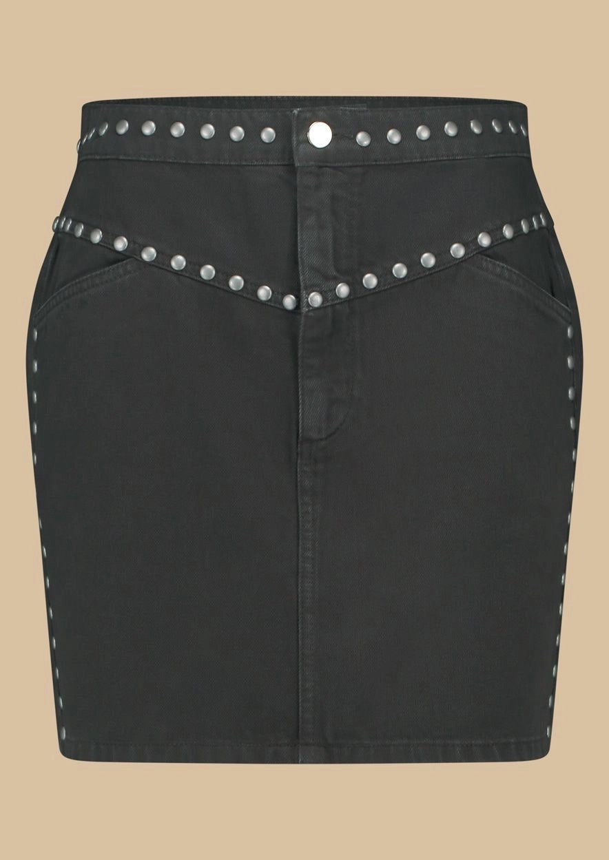 De Coco Skirt Washed Nero is een stoere, vrouwelijke minirok in washed zwarte kleur, perfect voor een edgy look met een vleugje rock-chic. Deze katoenen rok is afgewerkt met metalen studs, wat zorgt voor een opvallend detail.