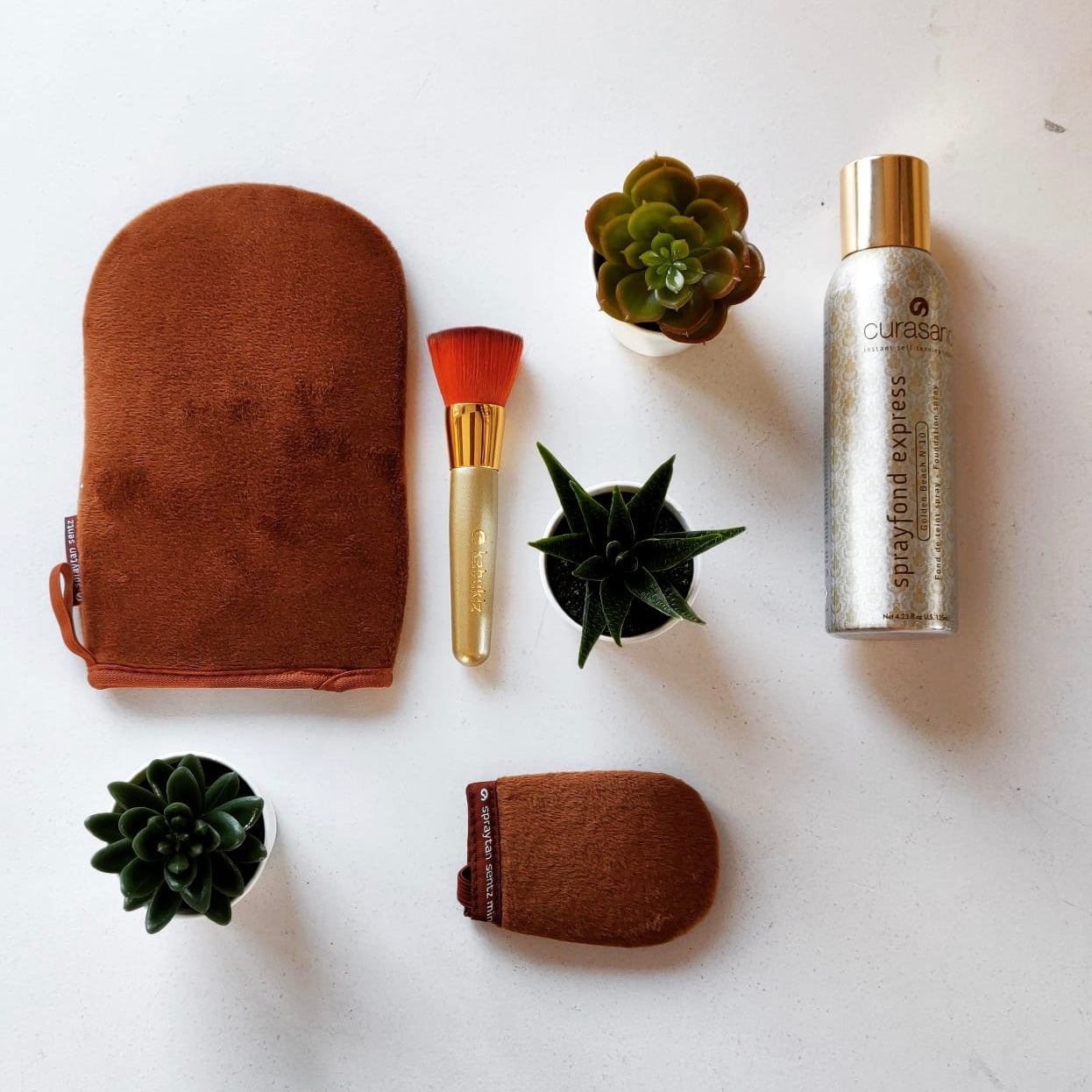 - Spray op de Kabukiz Brush voor kleine oppervlaktes en voor contouring