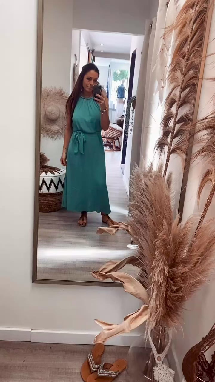 Draag de jurk los voor een nonchalante beach look, of accentueer met het bijpassend lint voor een eleganter silhouet. Perfect voor warme dagen, vakanties of een stijlvol diner.