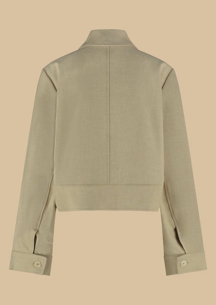 De faith Jacket is de perfecte zomer damesjas. De loose fit zorgt voor een comfortabele en relaxte pasvorm, in een zachte blend van khaki melange. De knoopsluitingen en twee borstzakken voegen subtiele details toe voor een minimalistische en moderne afwerking. Deze jacket is ideaal als lichte extra laag over een top of blouse en perfect te combineren met zowel jeans als jurken!