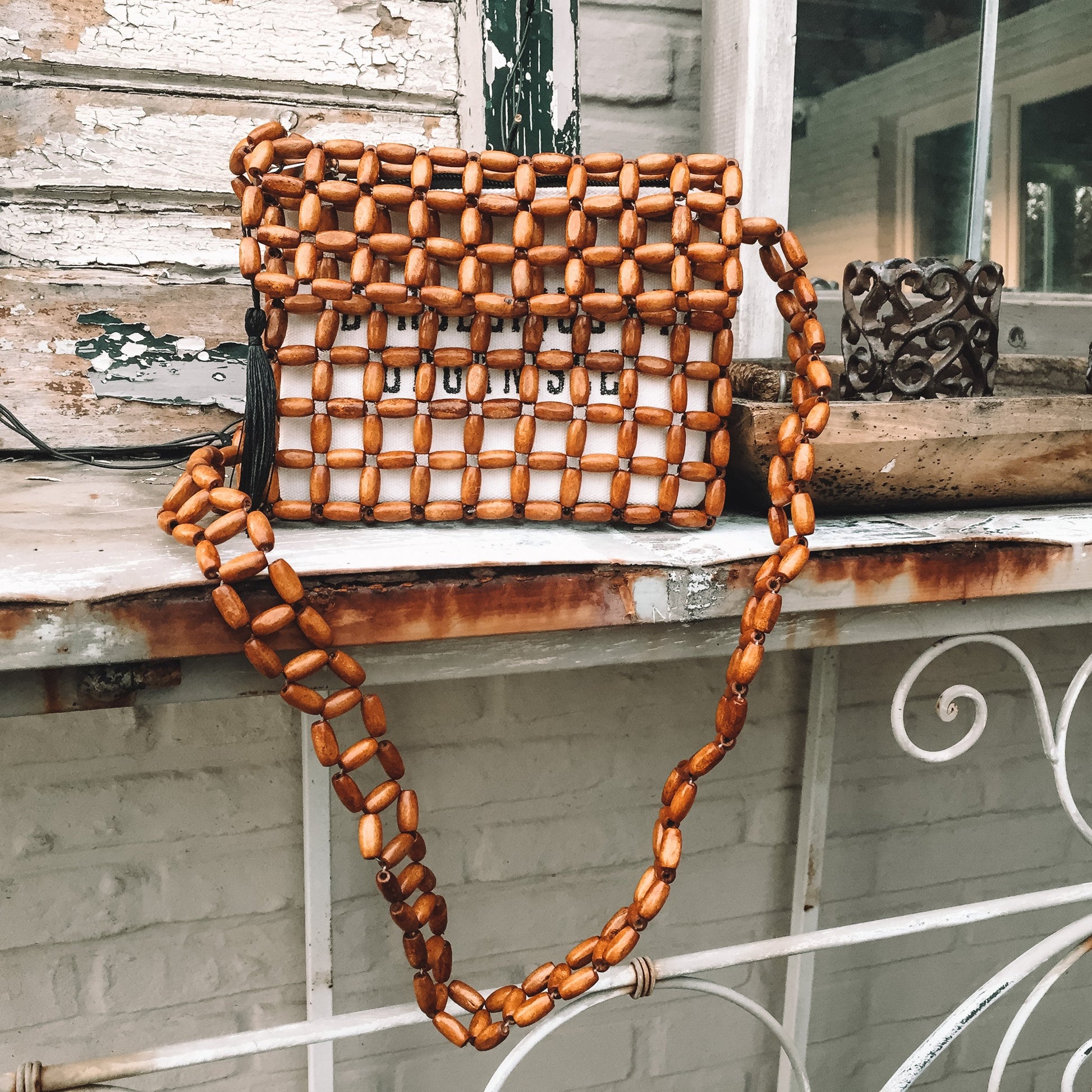 ❤︎ Super tof klein schoudertasje gemaakt uit houten parels! Handig tasje voor een avondje uit met enkel je wat je nodig hebt.