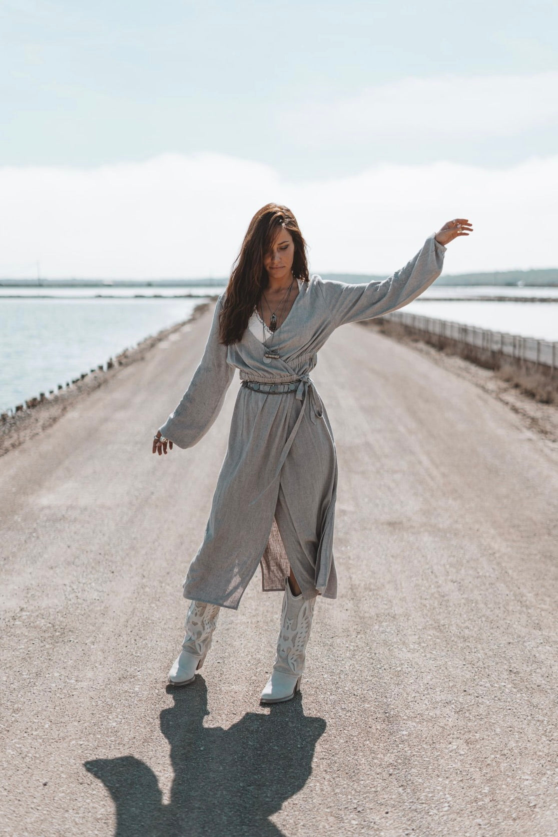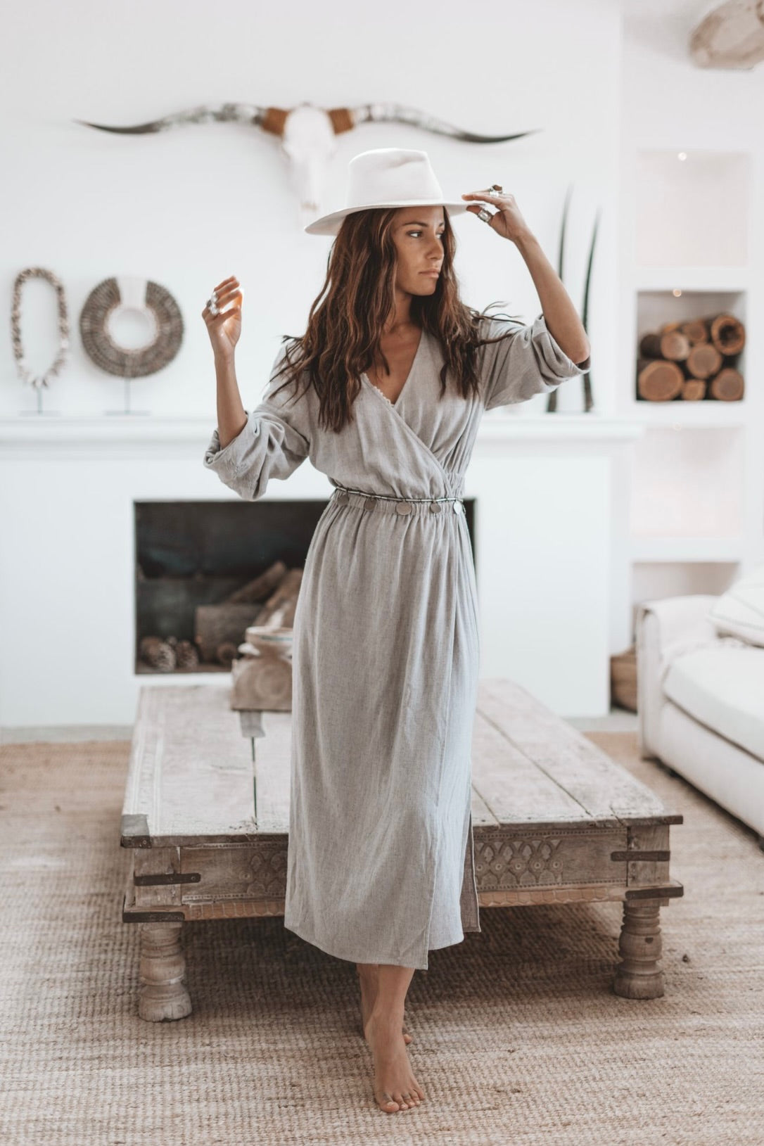 Helena Linen Wrap Dress Light Grey
