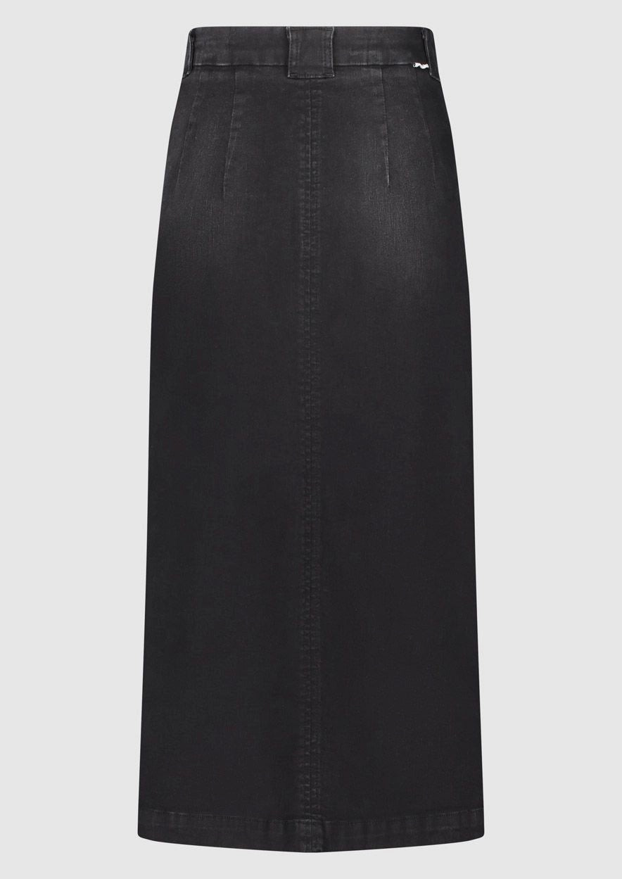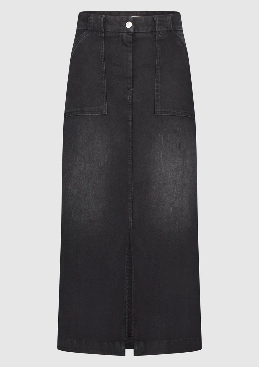 De Ivy Denim Skirt in Dazzle Black is een lange zwarte jeans rok gemaakt van comfortabel stretch denim. Deze rok heeft een klassieke 5- pocket design en een opvallende split vooraan wat zorgt voor een moderne look en bewegingsvrijheid.