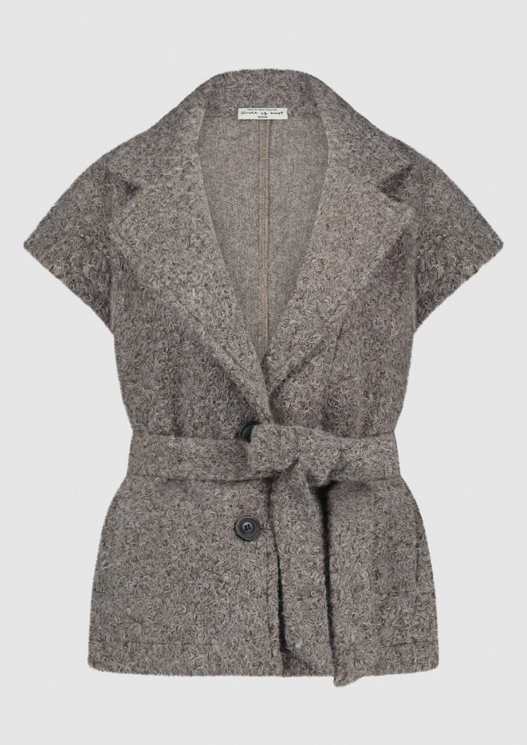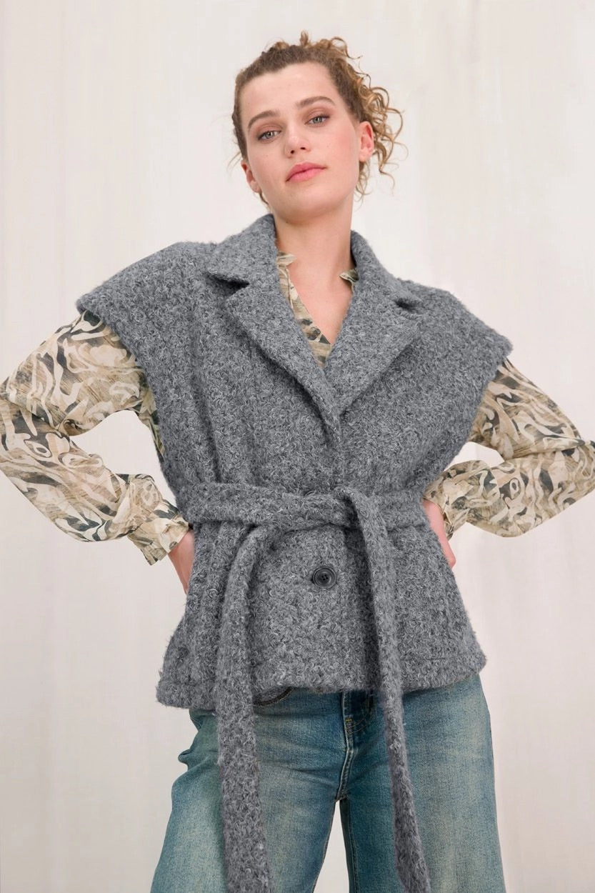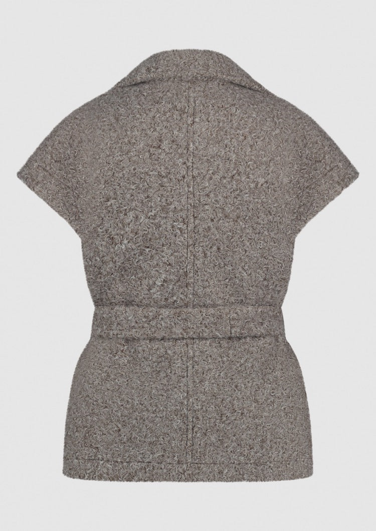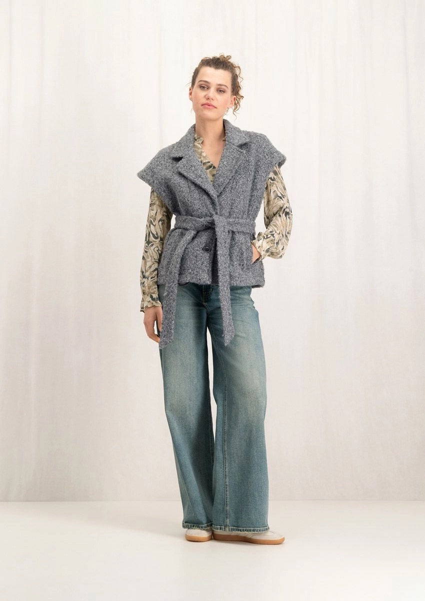 De Jenny Gilet is een mouwloze dalmes gilet, perfect voor lagering in elk seizoen. Gemaakt van een zachte in bouclé stof van grijstinten of bruintinten. Met de bijpassende ceintuur centreer je de taille en de gilet naar wens stylen. De gilet is voorzien van knopen om te sluiten en praktische steekzakken. Ideaal om te dragen over een blouse of trui tussen seizoenen door.