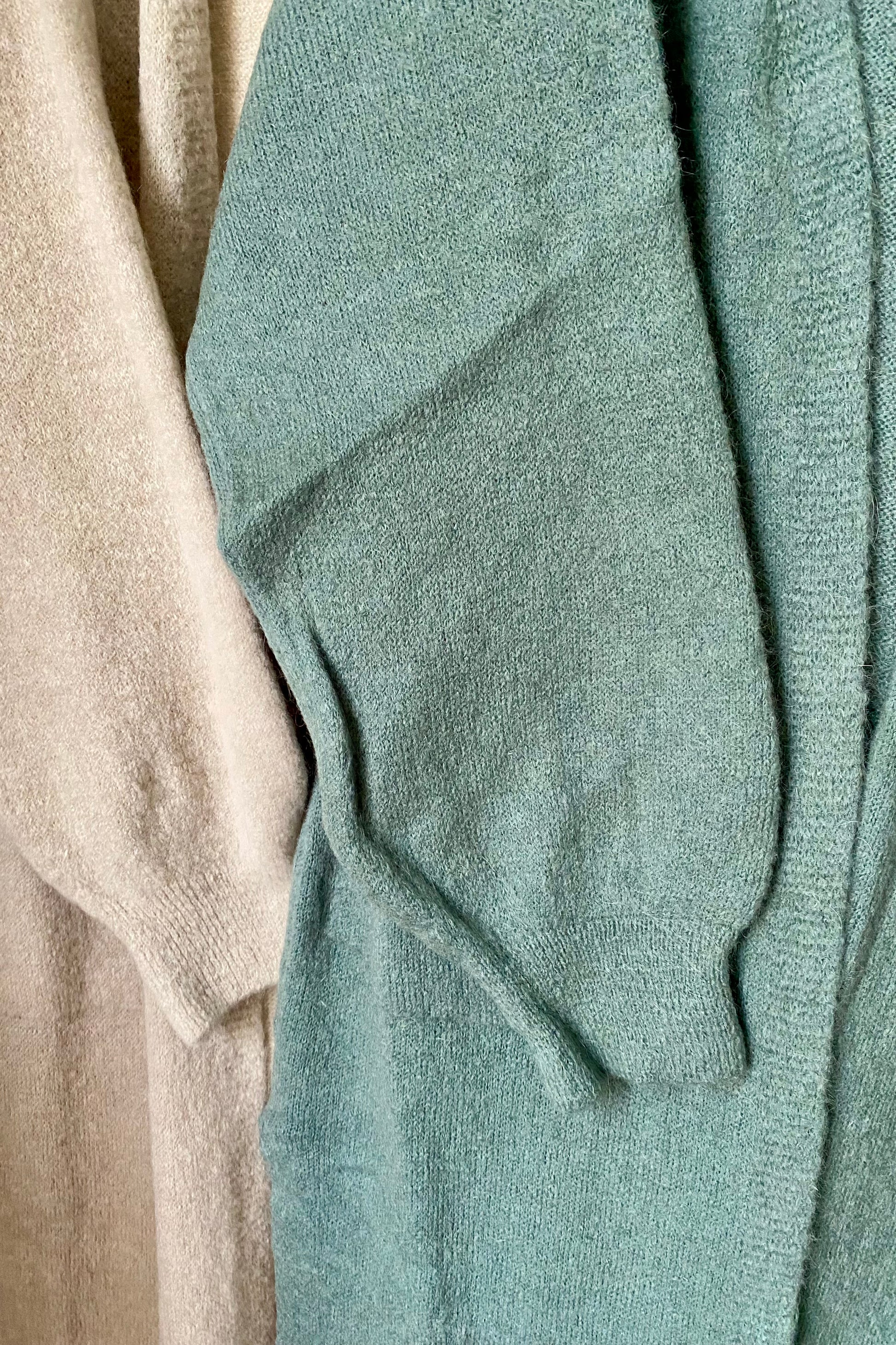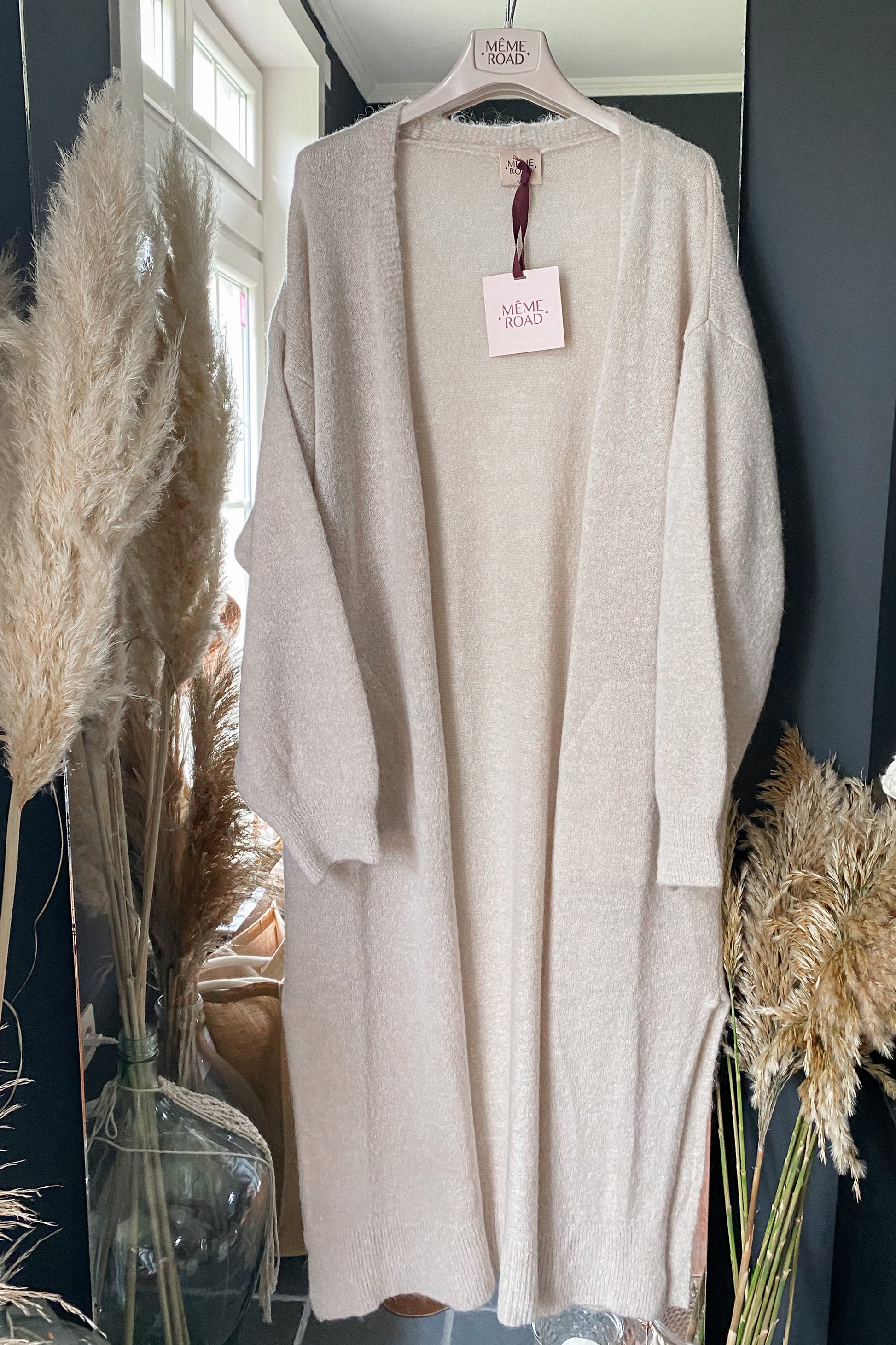 De cardigan is van een open voorkant, wat hem makkelijk maakt om aan te trekken. De lengte en de split onderaan maakt het veelzijdig en geschikt voor verschillende gelegenheden en perfect is om op diverse outfits te dragen. Of je hem nu draagt over een eenvoudige blouse draagt of over een t-shirt voor een ontspannen weekendstijl, deze cardigan voegt een vleugje verfijning toe aan elk ensemble.