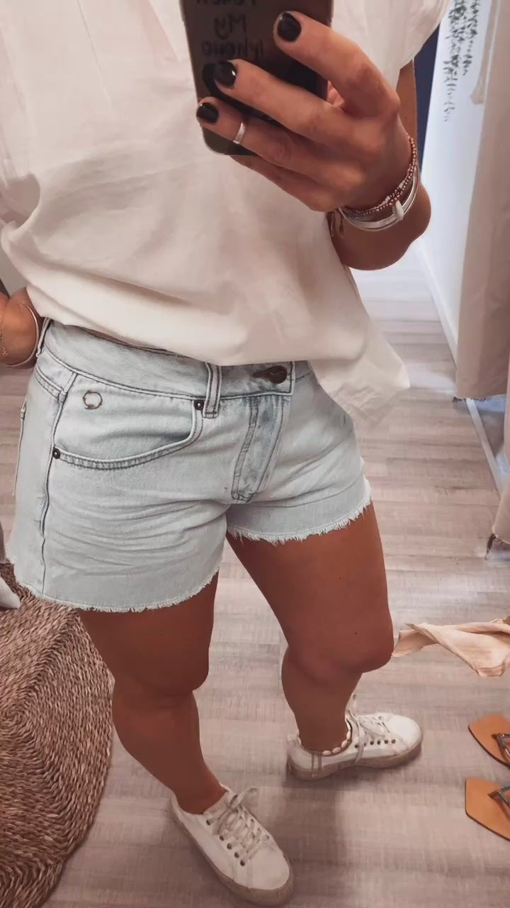 De Lody Short Mykonos Blue is jouw go-to jeans short voor zomerse dagen. Deze lichtblauwe denim short heeft een 5-pocket design en een stoere afgeknipte zoom voor een nonchalante look. Gemaakt van een comfortabele stretch katoenmix, zit deze short heerlijk en behoudt hij zijn vorm.