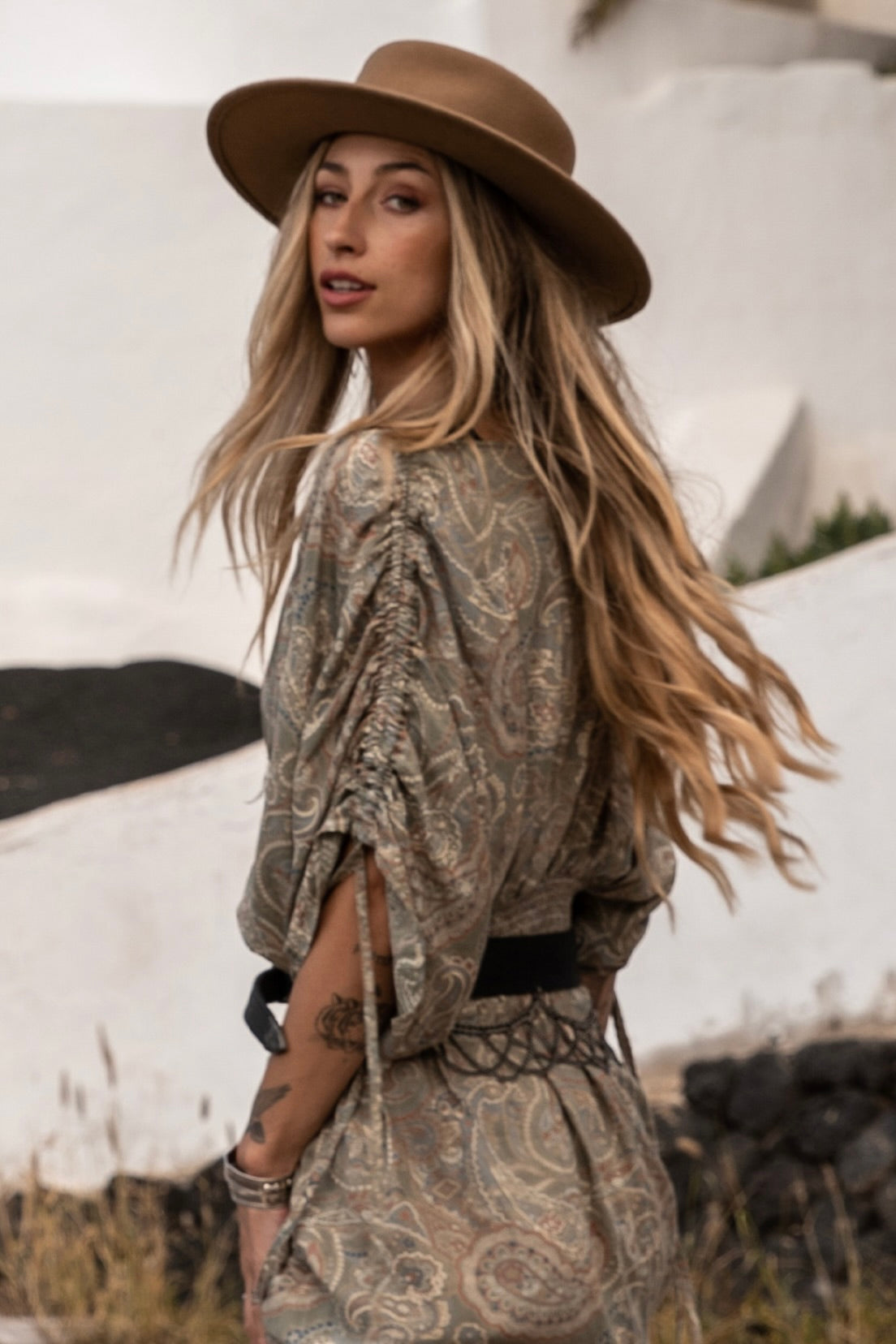 - Vlindermouwen met ingewerkt lint, kan gestropt worden naar wens
