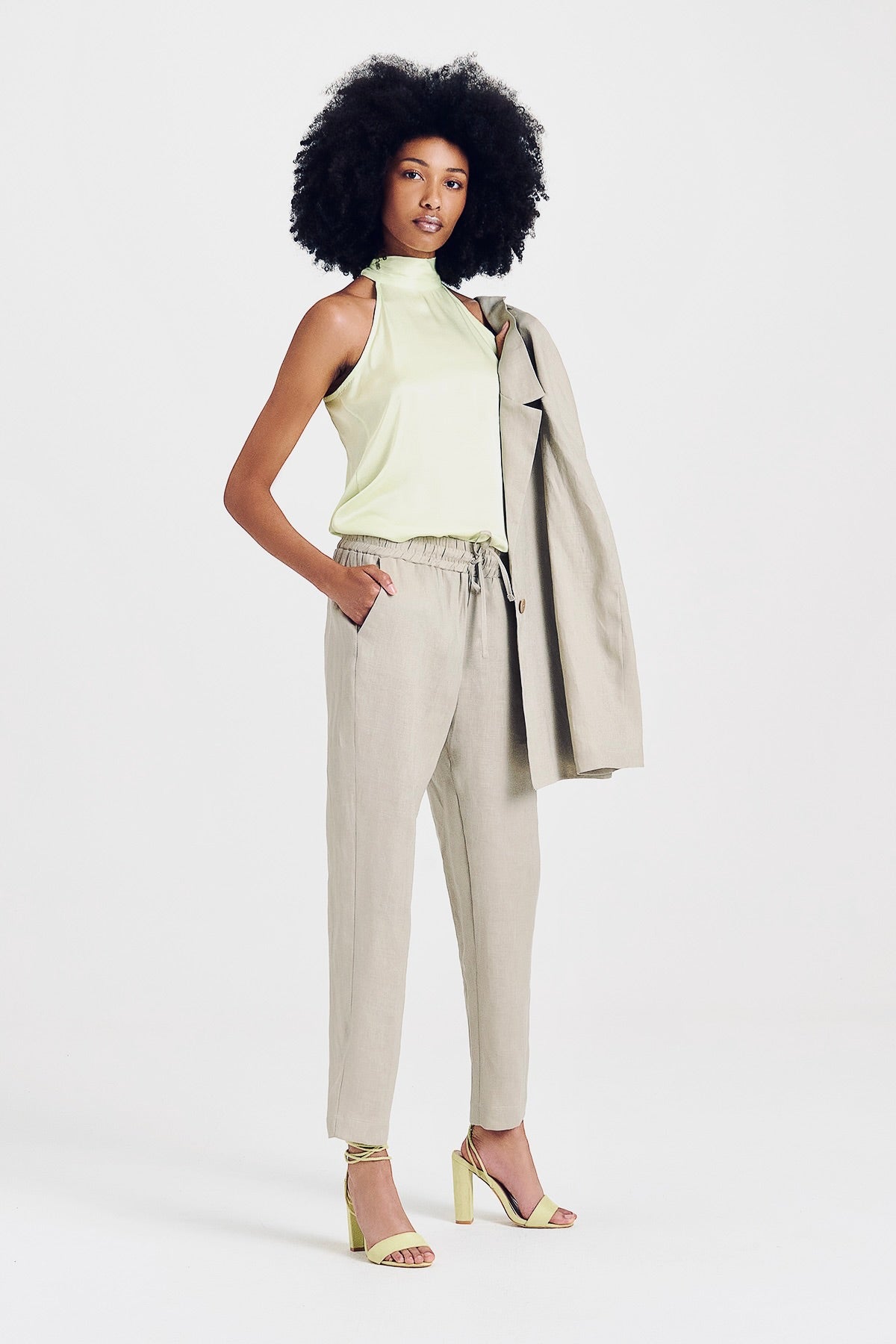 Laat je betoveren door de romantiek van de mouwloze top van Même Road. De unieke sluiting in de hals met een lang lint creëert een sjaalachtige uitstraling, terwijl het de schouders benadrukt voor een vrouwelijke look. Met een A-lijn silhouet biedt deze top een flatterende pasvorm voor elk figuur.