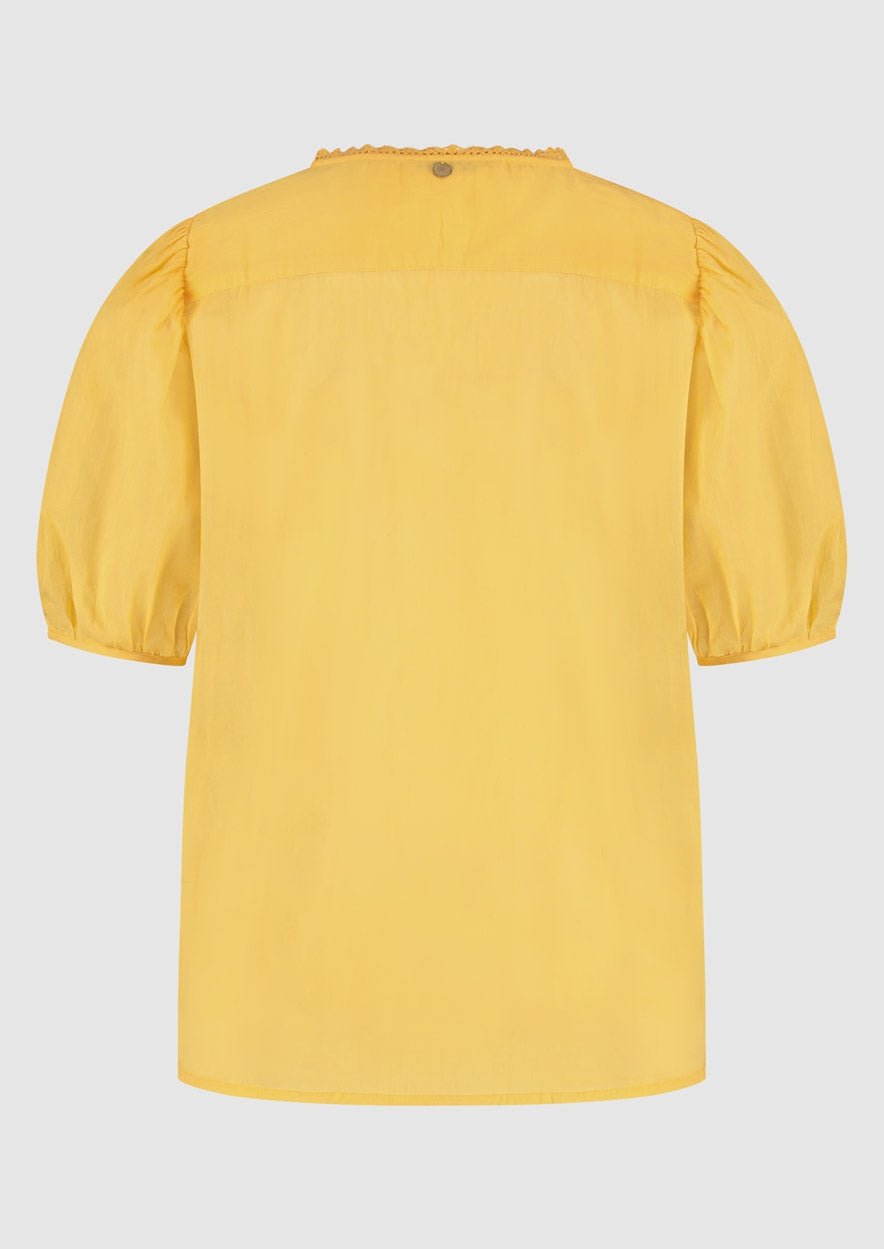 De Samira blouse in warme abrikoos kleur, korte mouwen en een losse pasvorm geeft een zomerse en speelse touch aan je outfit. De blouse heeft een korte knoopsluiting bovenaan en subtiele accenten op het voorpand in licht transparant katoen. Gemaakt van 100% katoen voor een luchtige uitstraling.