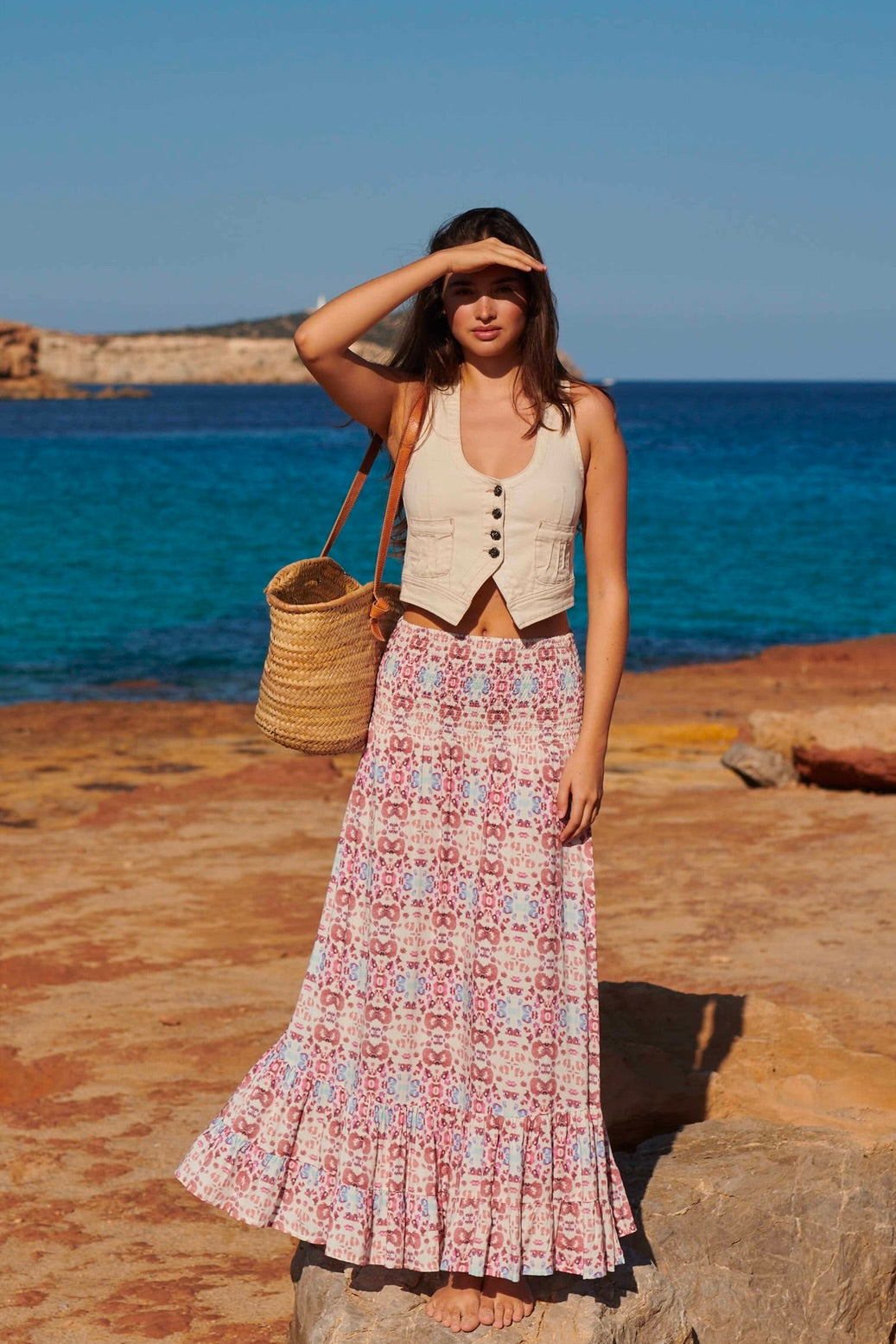 De Denim Gilet Cream is een Crémekleurige jeansgilet die je op verschillende manieren kunt dragen. Dankzij het korte model en de unieke knopen is deze gilet perfect als top, maar ook mooi over een t-shirt of blouse voor een gelaagde look. Gemaakt van hoogwaardige denim stof en een vleugje stretch voor een perfecte pasvorm. Combineer met de Flared Denim Cream van Isla Ibiza Bonita voor een boho-chic outfit.