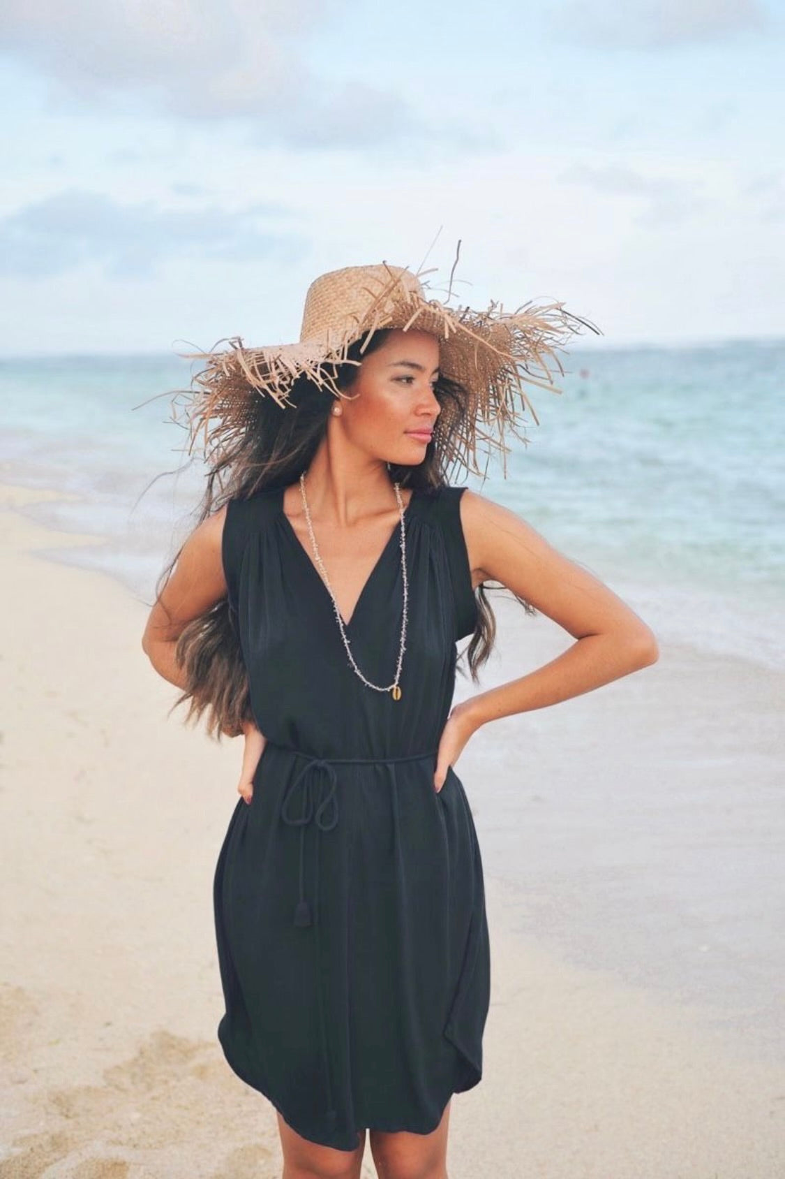 Deze zwarte veelzijdige mouwloze korte Hot Lava Venice jurk is vervaardigd uit crinkle Rayon en biedt comfort en stijl in één. Met een elegante V-hals en een lint om de taille te accentueren, is deze jurk perfect voor een dagje strand maar ook een avondje uit.