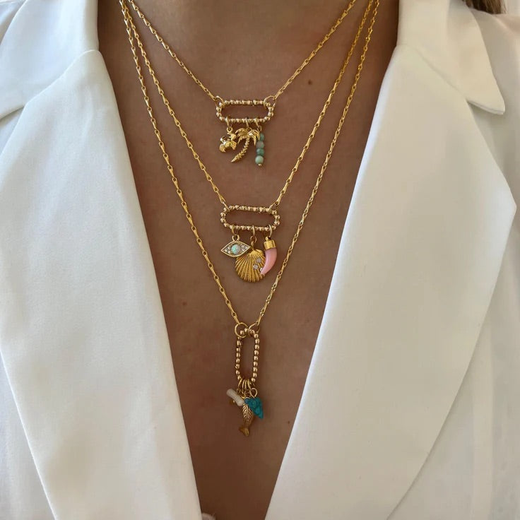 De sierraden zijn gemaakt van brass en met een laagje 14 tot 16K Gold plated, zo behouden ze hun kleur en zijn ze anti- allergisch! Met grote zorg worden ook de natuursteentjes, zoetwaterparels en steentjes uitgekozen.