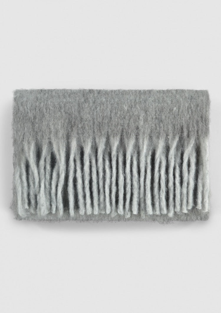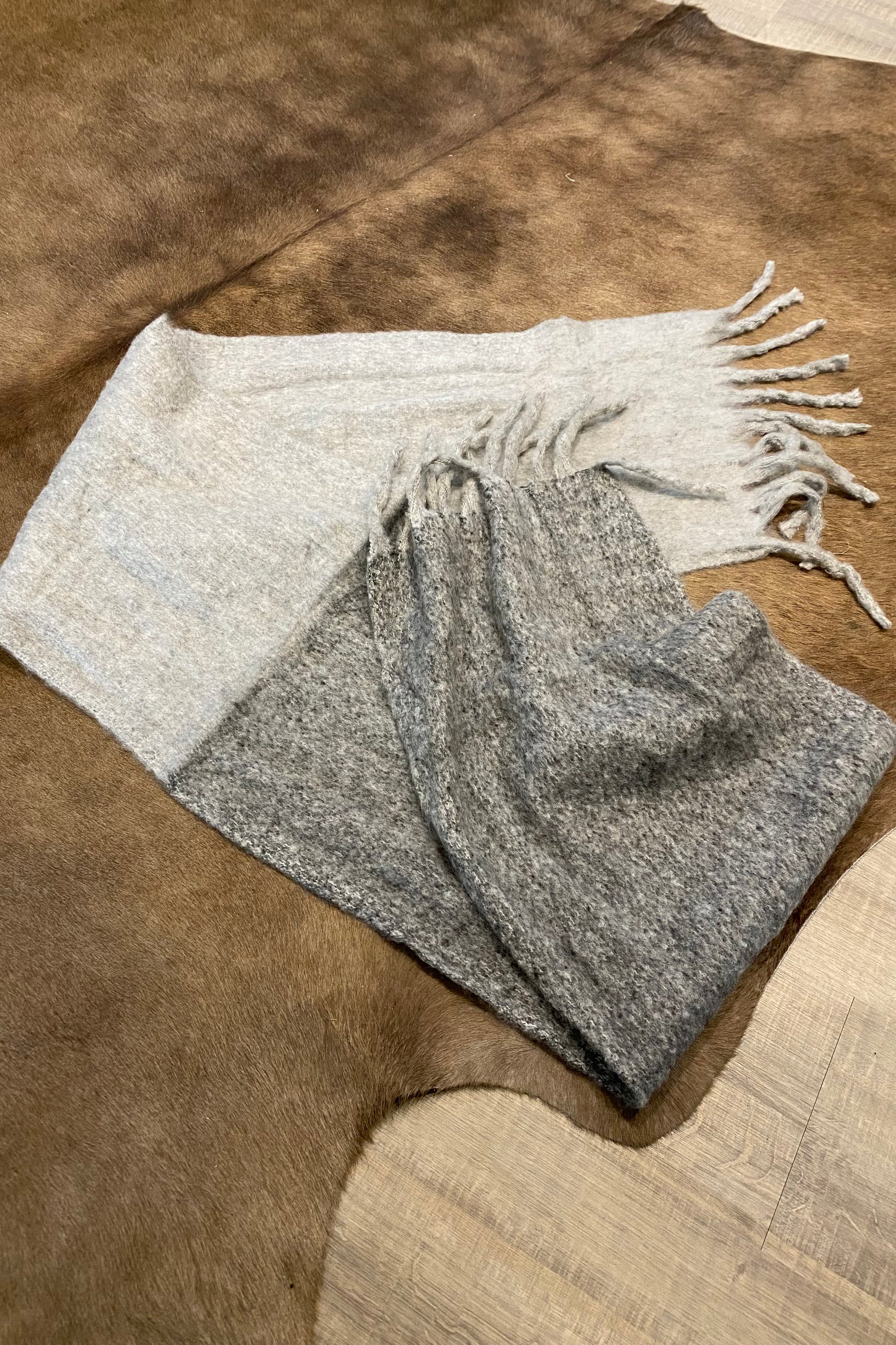 Deze extra lange en brede sjaal, perfect voor het koudere seizoen is gemaakt in een stijlvol duo van melange licht- en donkergrijs. De franjes aan de uiteinden voegen een speelse touch toe? Heerlijk zacht en ideaal om jezelf in te wikkelen tijdens koude dagen!