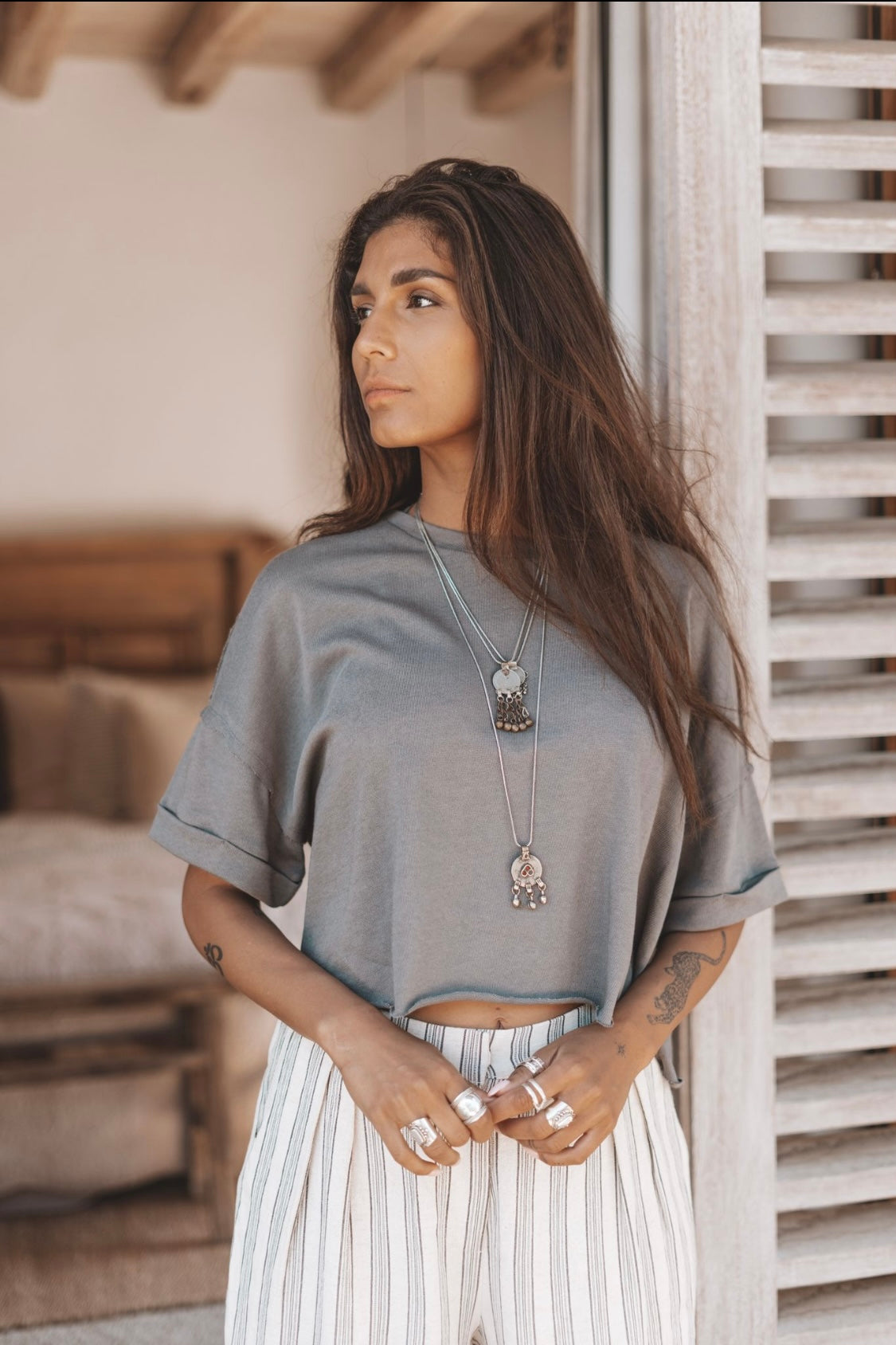 De Ziva Boxy top van Moost & The Muse, een oversized, korter t-shirt model met een trendy Boxy pasvorm. De top is beschikbaar in grijs en wit, met brede ronde hals en omslag aan de mouwen voor een moderne twist. Terwijl het detail op de rug een binnenstebuiten look geeft voor een unieke uitstraling. Kies jouw favoriete kleur Drak Grey of Off-white!